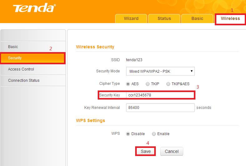 Security .The Security key is the password of your wireless network,please change it here.