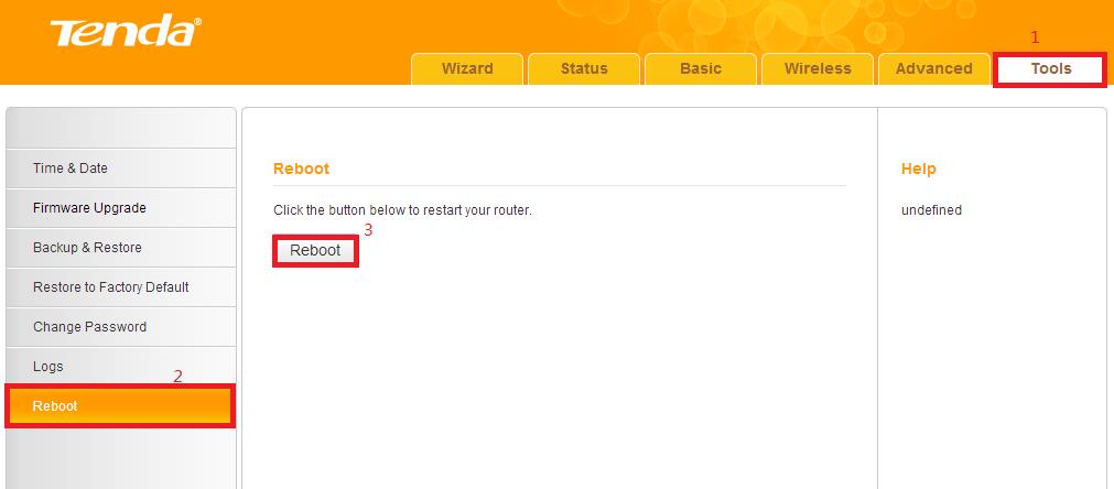 Click on Tools, and then choose the Reboot option on the left of the page, then hit on the Reboot button to refresh the device info.