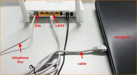 Connect the DSL line with the DSL port of D303, and then connect your computer with one of the LAN ports by a cable.