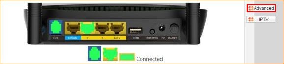 Note: after connection the SYS light should be blinking, the WLAN light should be on or blinking, the DSL light should be on or blinking, the LAN light should be on or blinking.