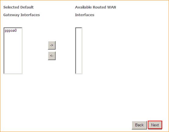 3.2.3 Click WAN Service and Add, keep the atm0 and click Next, please type in user name and password (you can consult your ISP for it if you don’t know).Click Next and click Apply/Save.