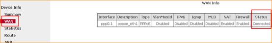 3.1.6 After reboot, Click on Device Info, WAN, then check the WAN Status if the Connection Status shows Connected that means you can access internet, please check.