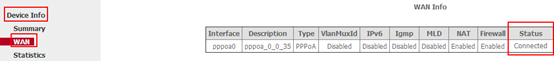 3.1.6 After reboot, Click on Device Info, WAN, then check the WAN Status if the Connection Status shows Connected that means you can access internet, please check.