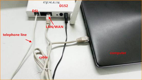 Connect the DSL line with the DSL port of D152, and then connect your computer with one of the LAN ports by a cable.