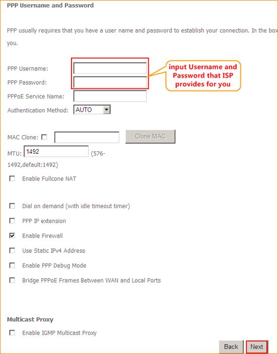 Note: If you have no idea about what is the internet connection type, VPI/VCI value, the accounts (user name and password) please call your ISP for them.