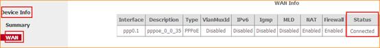 3.1.6 After reboot, Click on Device Info, WAN, then check the WAN Status if the Connection Status shows Connected that means you can access internet, please check.