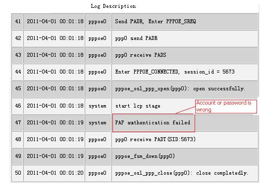 2.Make sure enter the right Account and password, you can try to dail up when not connect the router or enter the router’s management interface, click System Tools-Syslog.