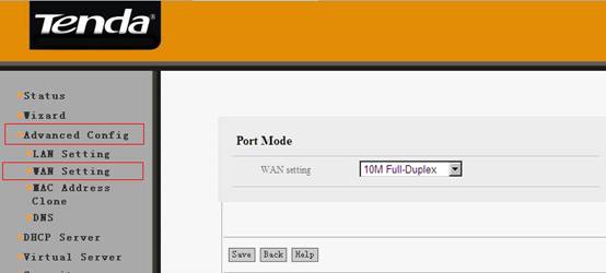 3.If the ISP connection style is broadband connection, then you can change the WAN speed to increase the driver ability. you can change the WAN speed to be 10M Full-duplex or 10M Half-duplex.