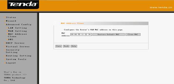 Login to the router’s management interface (192.168.0.1),Select Advanced Settings-MAC Clone-Save