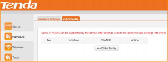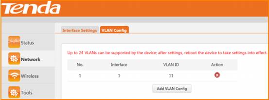 Step 1: Click Network to VLAN Config page as below, and click “Add VLAN Config”;