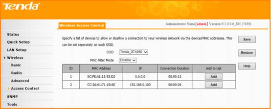 Now, you have already setup the Access Control, but you cannot access to the Internet without permitted MAC.  If you have any problems, please contact our customer service, the email address is support@tenda.com.cn, thank you!