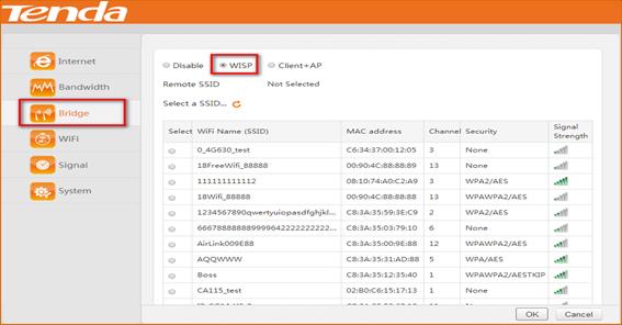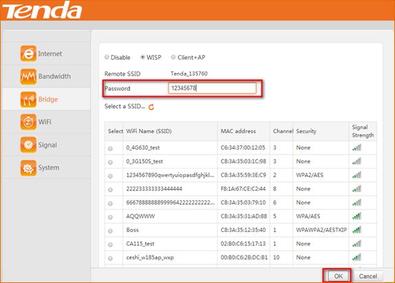 3.   Find and select the Wi-Fi Name (SSID) of the remote router, Tenda_135760