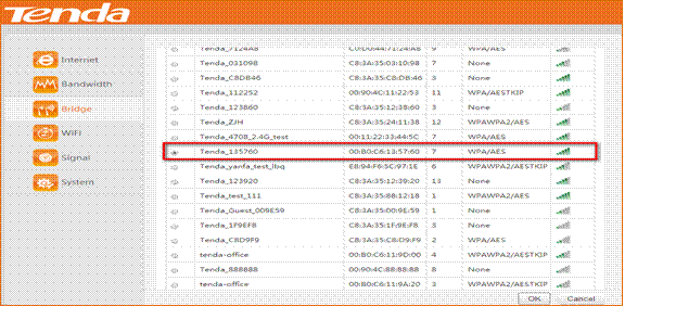 3.   Find and select the Wi-Fi Name (SSID) of the remote router, Tenda_135760