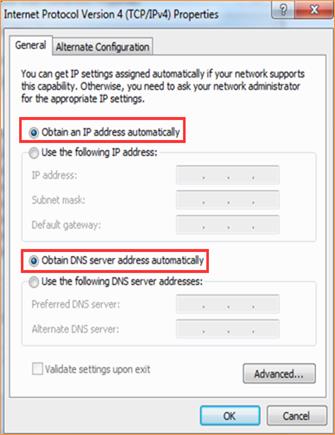 5. Select Obtain an IP address automatically and Obtain DNS server address automatically and click OK