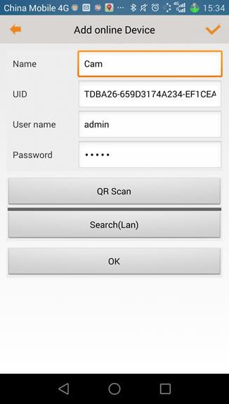 Click the Camera in Search LAN interface,you can see page shows as below :