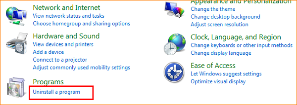 B.Click “Uninstall a program”;
