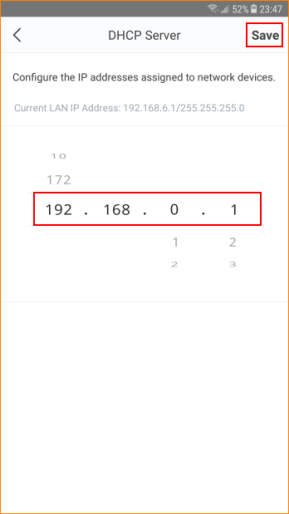 Step 1: Open Tenda Wi-Fi App, tap “Settings” > “DHCP Server”, change address to 192.168.0.1, tap “Save”.