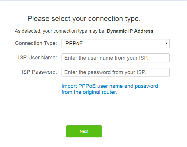 Case 2:If your connection type is Dynamic IP Address. Please tap “Next”.