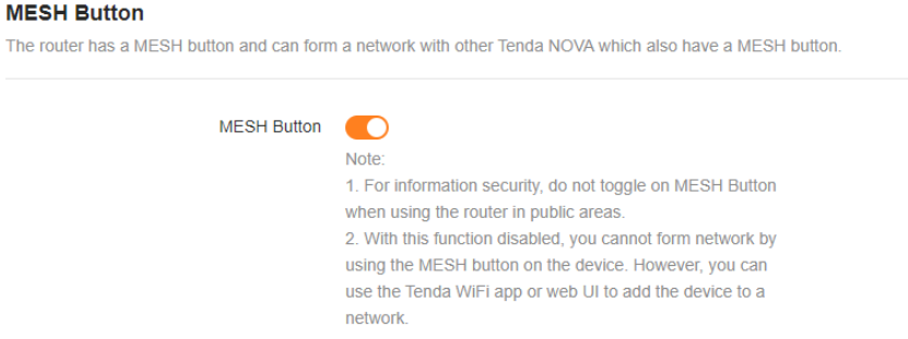 ⚫ For information security, do not toggle on MESH Button when using the router in public areas.