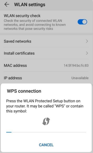 Wait until the WPS negotiation completes. Now the phone is connected to the Wi-Fi network.
