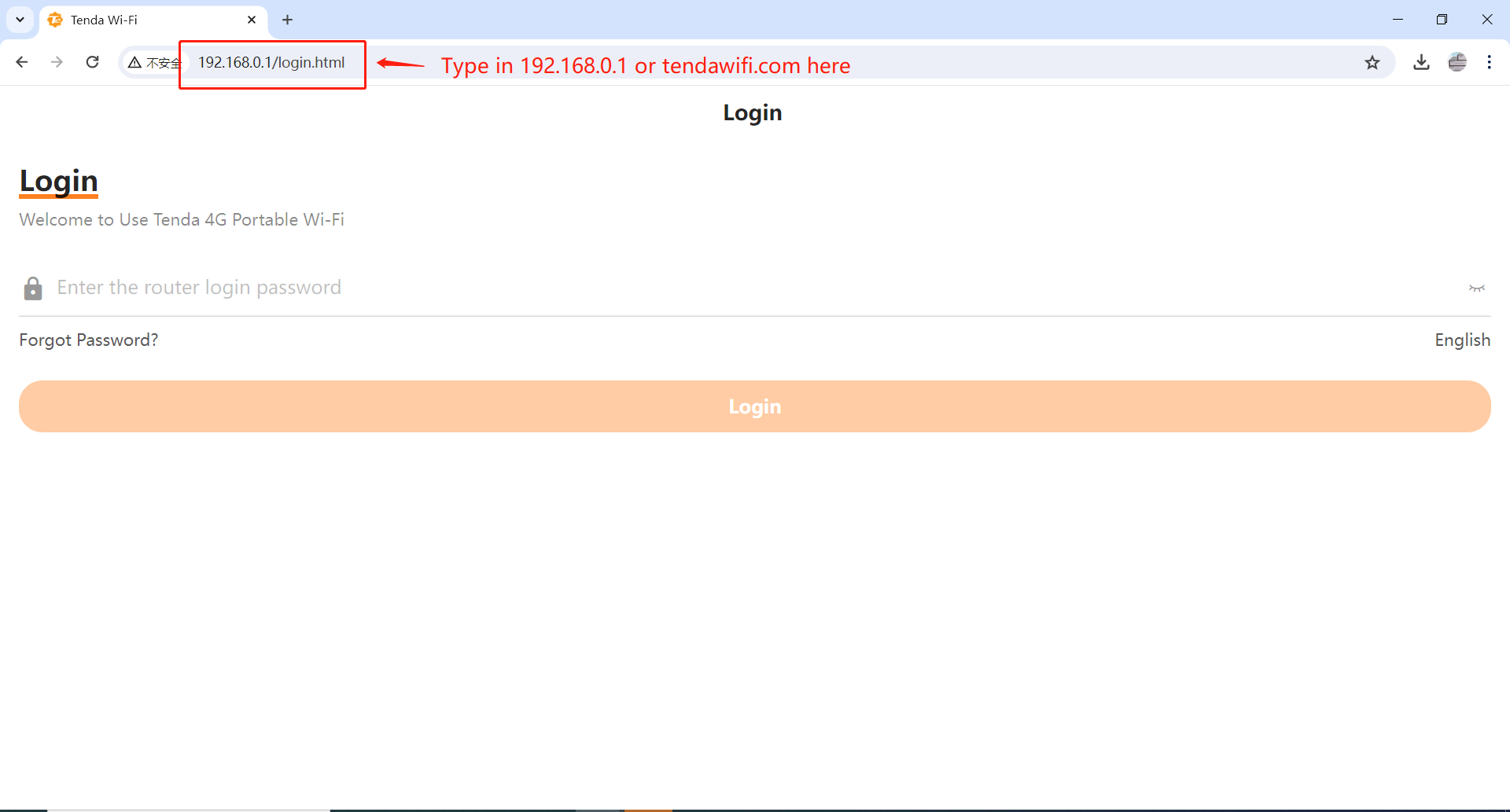 Open a browse, here take Chrome on laptop as an example, type in 192.168.0.1 or tendawifi.com, and then enter password to login.