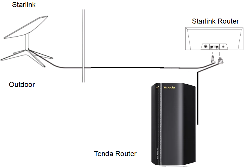 Note: Bypass Mode will disable Starlink's built-in WiFi. All terminal devices must connect to the network through the Tenda router. |