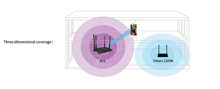 The AC6 comes with advanced beamforming technology where the router transmits its Wi-Fi signal in specific "beams", intelligently allowing the router to focus the signal to where it is needed to increase its strength. In other words, the AC6 turns a lantern into a flashlight.