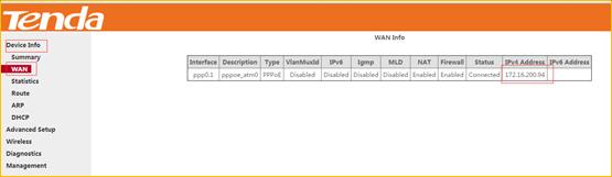 Click “Advanced”- “WAN”-“IPV4 Address”, if you have received a public IP address, that means you can access to the internet.