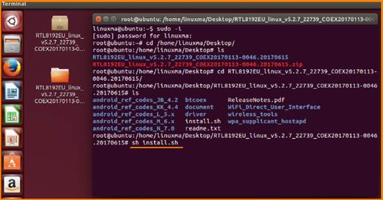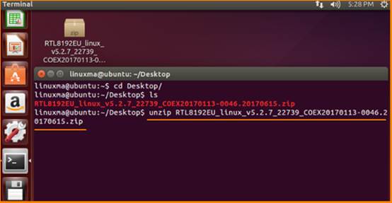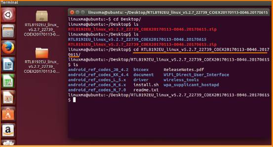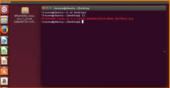 1. Place the driver on the desktop (or anywhere, e.g: desktop), and open Terminal at the current path (press Ctrl + Alt + T to open the terminal window). Enter command ls to view the current path.