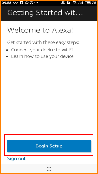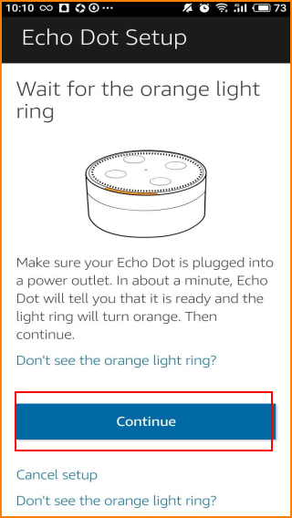 1.2 Begin Echo Setup. On your Echo device, press and hold the Action button until the light ring changes to orange, manually connect to your amazon device.