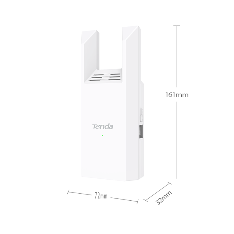 A19 is a AC1200 dual-band Wi-Fi range extender designed for medium and large families, single family houses. 5GHz band is equipped with two external FEMs, together with two highperformance external antennas, it can efficiently extend your existing wireless network, eliminate Wi-Fi blind zones, and enjoy a blazing-fast internet experience. The A19 is equipped with an Ethernet port, which allows you to experience network in AP mode. The configuration page of the extender will display automatically after connecting the smartphone or PC to the extender Wi-Fi. It can quickly complete the automatic dual-band extension (Tenda innovation). With the Tenda Wi-Fi APP, you can remotely view and manage extender devices anytime and anywhere, making your smart life one step faster.