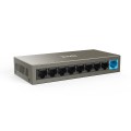 VLAN:Port 9 is an uplink port and ports 1 to 8 are isolated from each other.