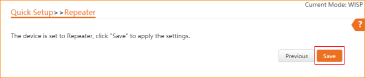 3.5 The device is set to Repeater, click "Save" to apply the settings.