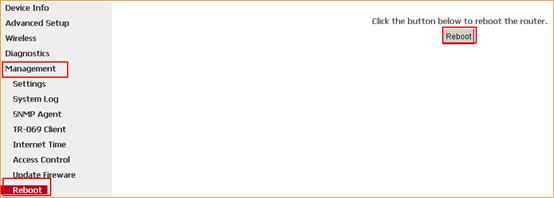 6 Click on Management and Reboot then hit on the Reboot button to reboot the router for refreshing the device info.
