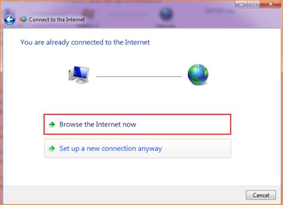 5.1 If you are already connected to the Internet and do not want to set a new one, click Browse the Internet now. (If you do not have connection or want to set up a new one, please click here.)
