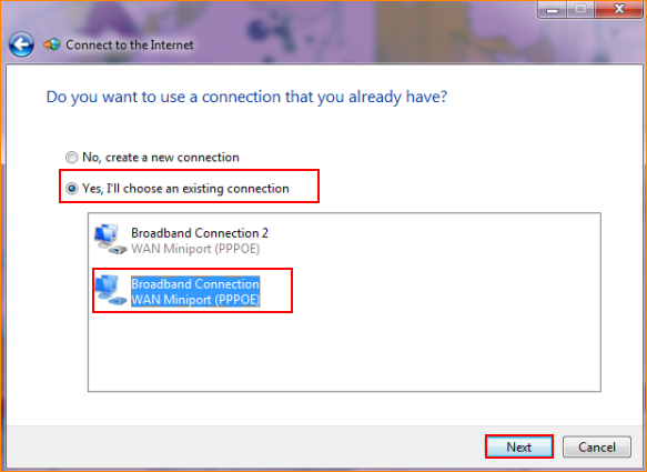5.1.1 Click Yes and choose the exist connection you want to use and click Next.