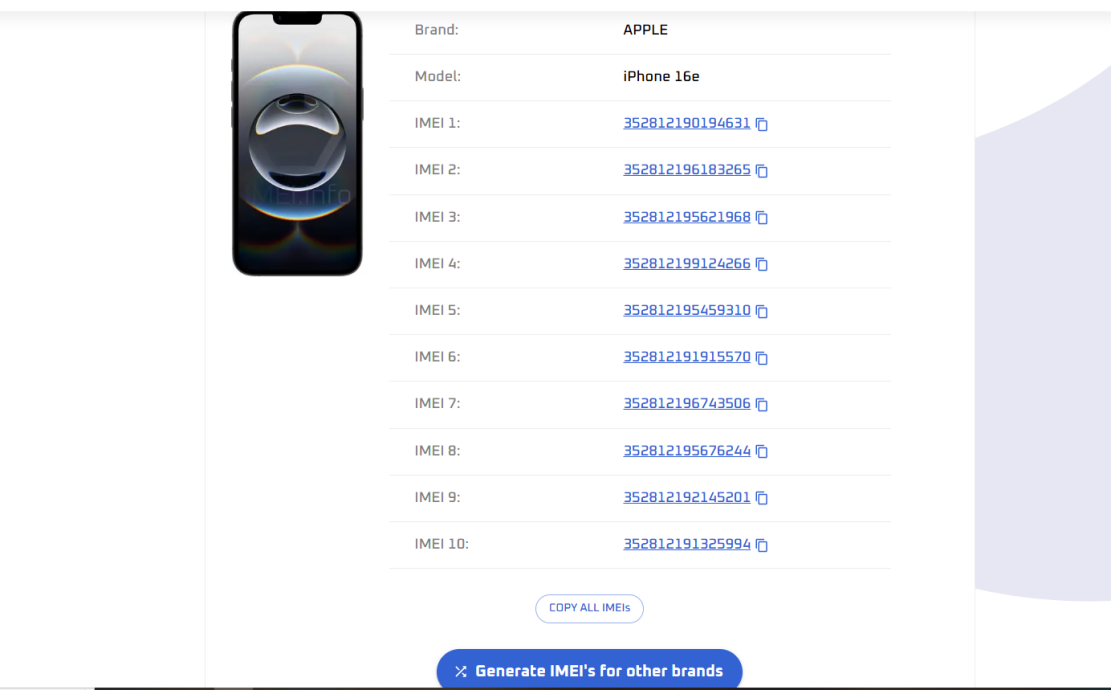 If you need to generate a new IMEI, you can click on the link https://www.imei.info/imei_generator/; Select the corresponding device to generate IMEI, you can freely choose here