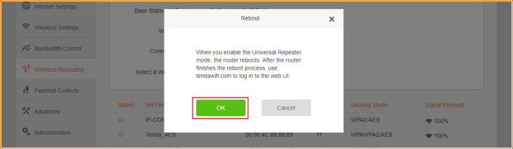2. Tap “OK” on the pop window, then the router will reboot automatically.
