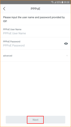 Step 3: Enter ISP user name and password, tap “Next”. If you forget ISP account and password, please ask ISP for help.