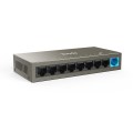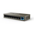 VLAN:Port 9 is an uplink port and ports 1 to 8 are isolated from each other.