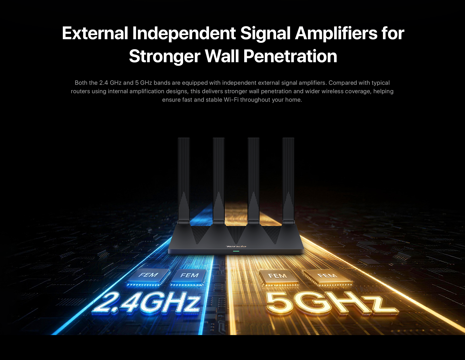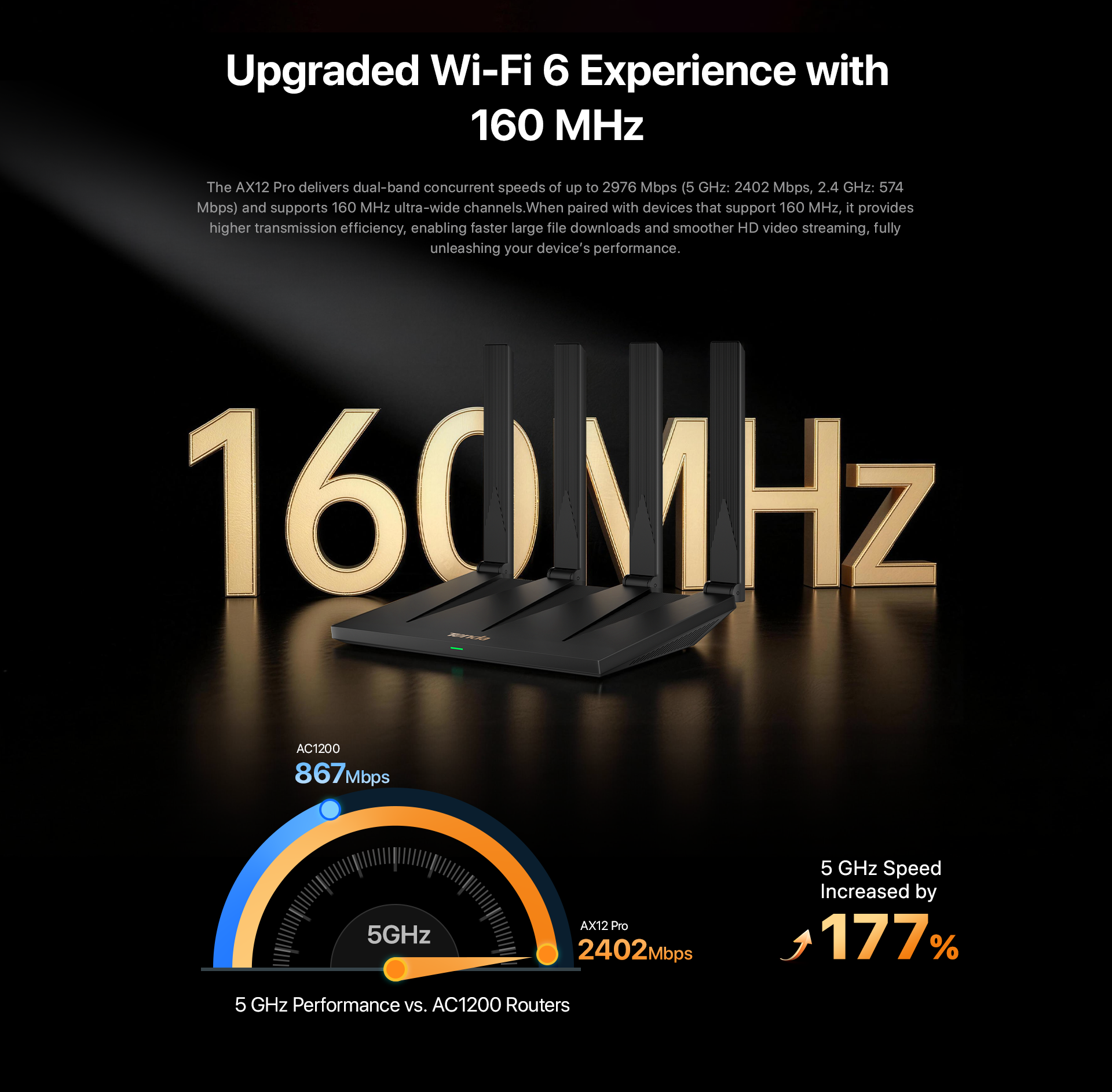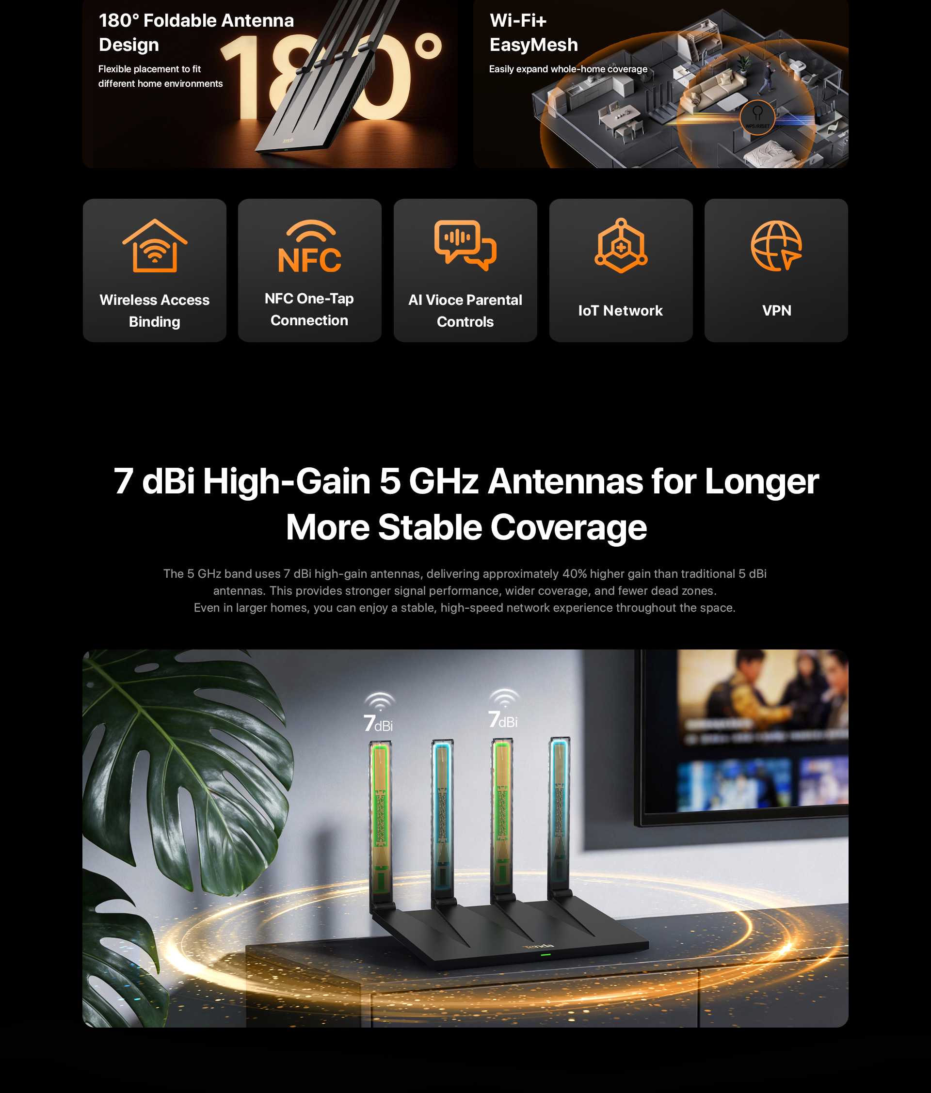 2、The data on this page are theoretical values obtained from Tenda's internal laboratory under specific test conditions. Actual performance may vary due to product variations, software versions, usage conditions, and environmental factors. Please refer to actual usage.