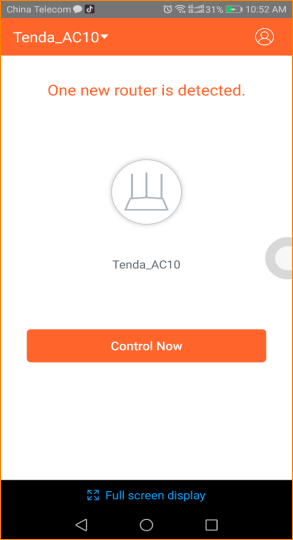 Method 1: Connect AC10U wireless signal, then open “Tenda Wifi App”. Tap “Control Now” to manage AC10U.