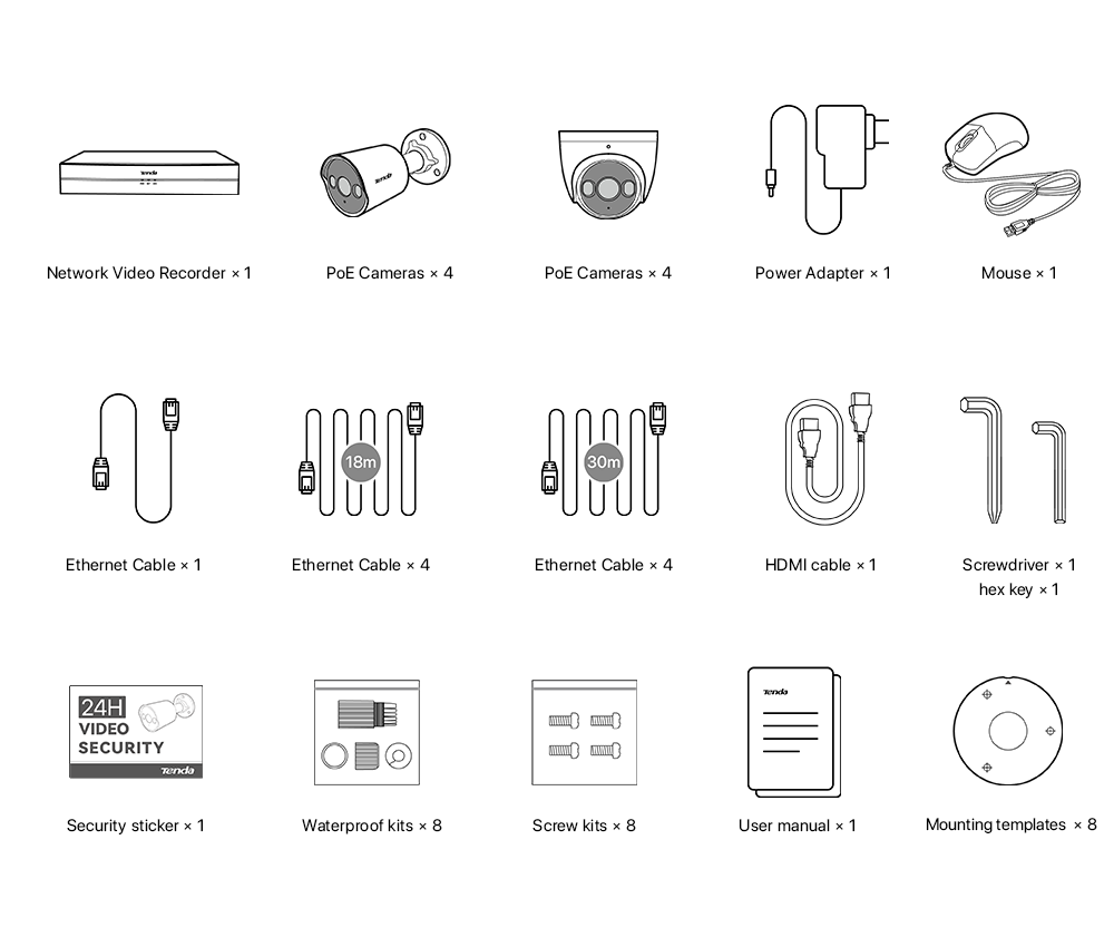 8× Screw kits (for PoE cameras)