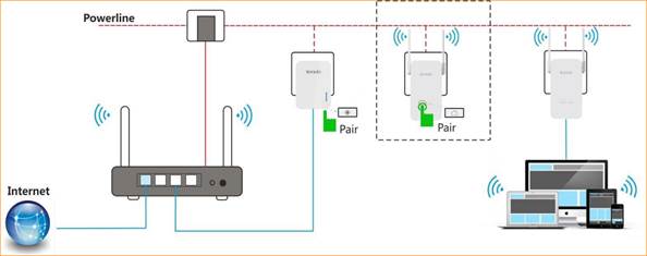 4. When PLC LED indicator on each powerline device turns solid green, a secure powerline network is established.