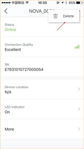 Procedure: Power on the nova unit, hold down the “Reset” button for 20 seconds until its LED turns solid white. In this case, the factory settings of the nova unit are restored.