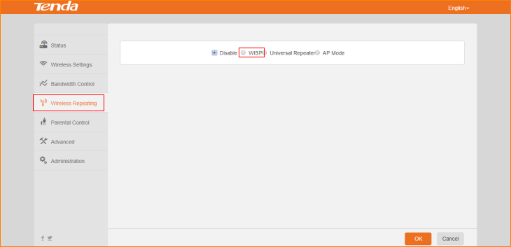 Step 3: Go to Wireless repeating-> Click “WISP”