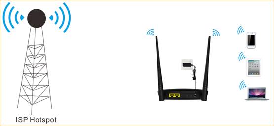 There are five operation mode for this CPE. In this mode, the AP will behave as client. In addition, router function is added between the wireless WAN side and the Ethernet LAN side. Therefore, the WISP subscriber can share the WISP connection without the need of extra router.