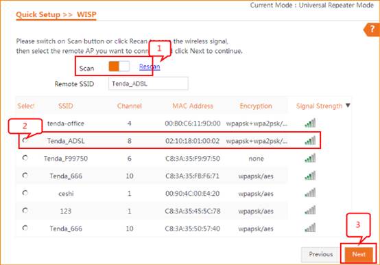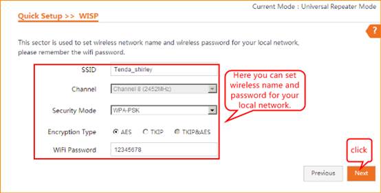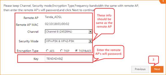 3 Confirm the remote AP’s info and type in the security key of the remote router. Then click Next.