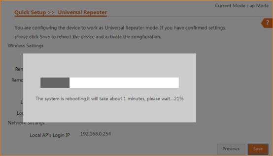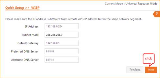 Such as if the remote router’s IP address is 192.168.0.1, we have to change this AP’s IP address to 192.168.0.2-253.