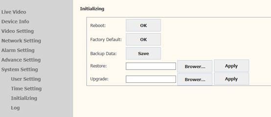 5) On Web page, click SYSTEM >System Setting > Initializing. It appears page as below.